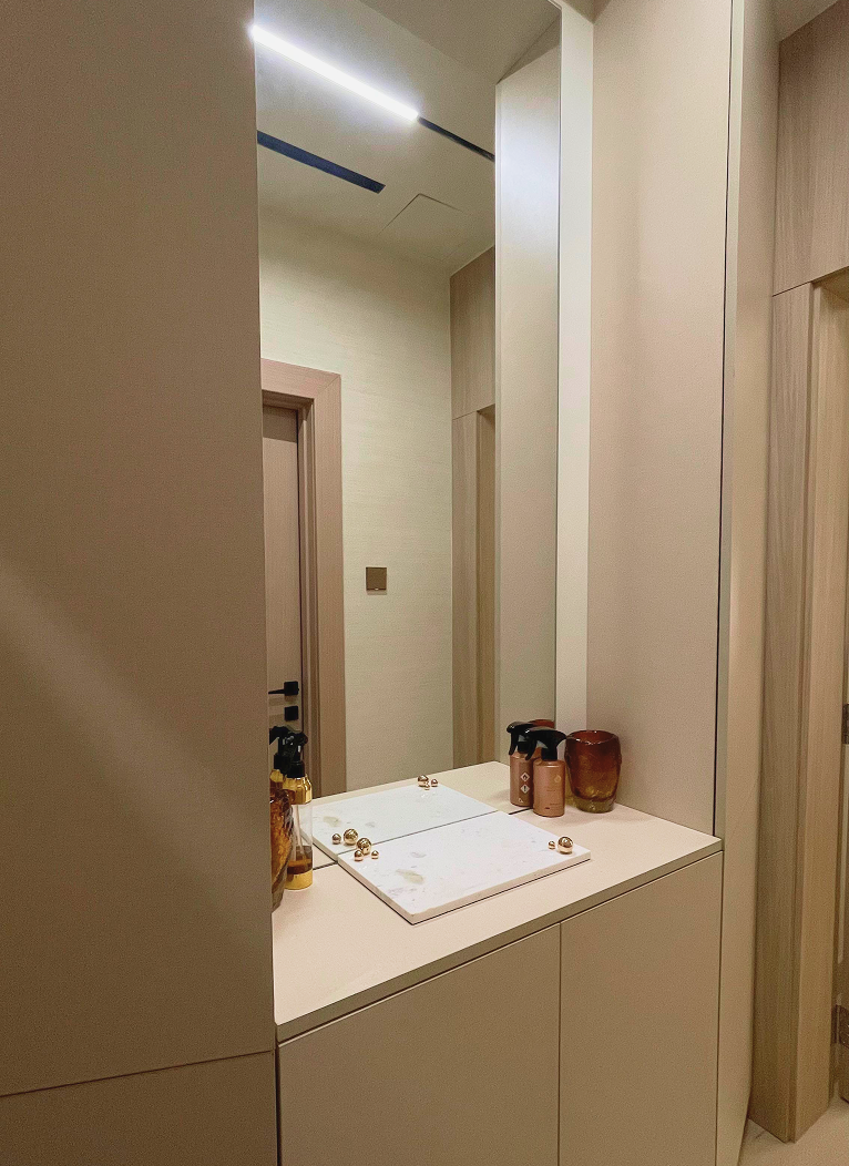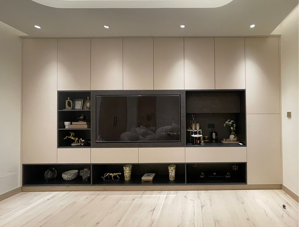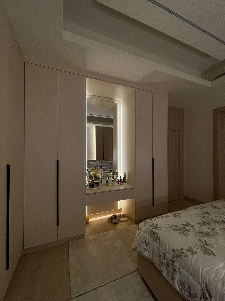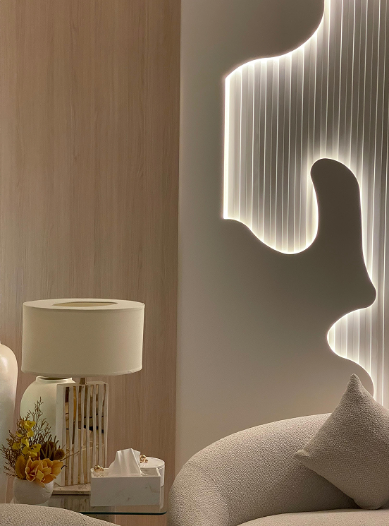 This project exudes contemporary elegance with its minimalistic design and calming neutral tones. Soft, sculptural furniture pieces create a serene atmosphere, enhanced by clever lighting features that add a sense of warmth and sophistication. The design focuses on clean lines and functional aesthetics, seamlessly combining comfort with modern luxury. The use of soft textures, such as plush seating and smooth cabinetry, complements the overall cohesive and inviting environment, making it an ideal space for both relaxation and intimate gatherings.